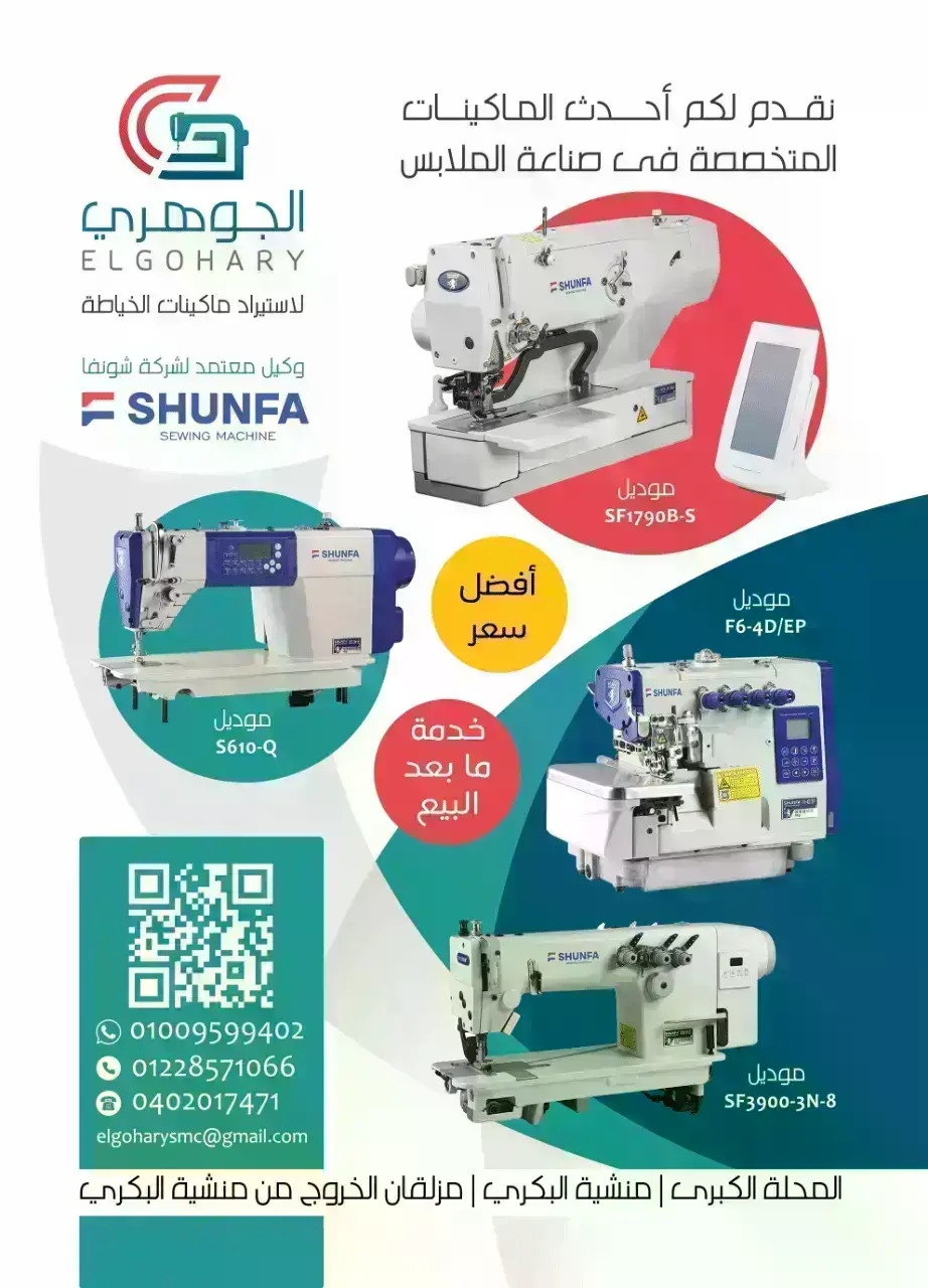 شركة الجوهرى لإستيراد ماكينات الخياطه