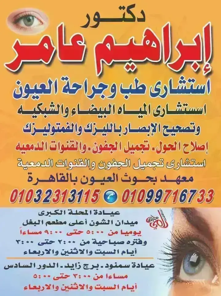 دكتور/ابراهيم عبد المعبود عامر. استشاري طب وجراحة العيون.